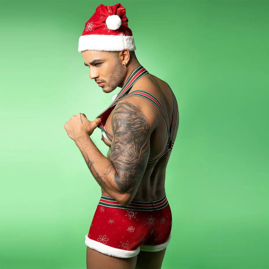 Red Harness & Pants Set Alluring Christmas Cosplay Lingerie For Men Role Play Outfit